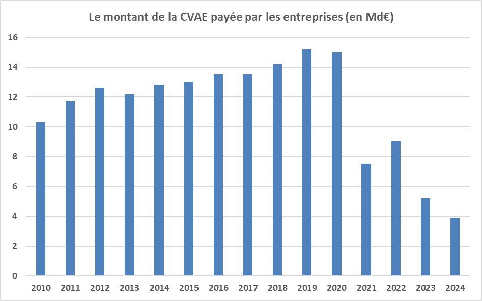 En 2024, la CVAE prélevée sur les entreprises s’est élevée à 3,9 Md€.