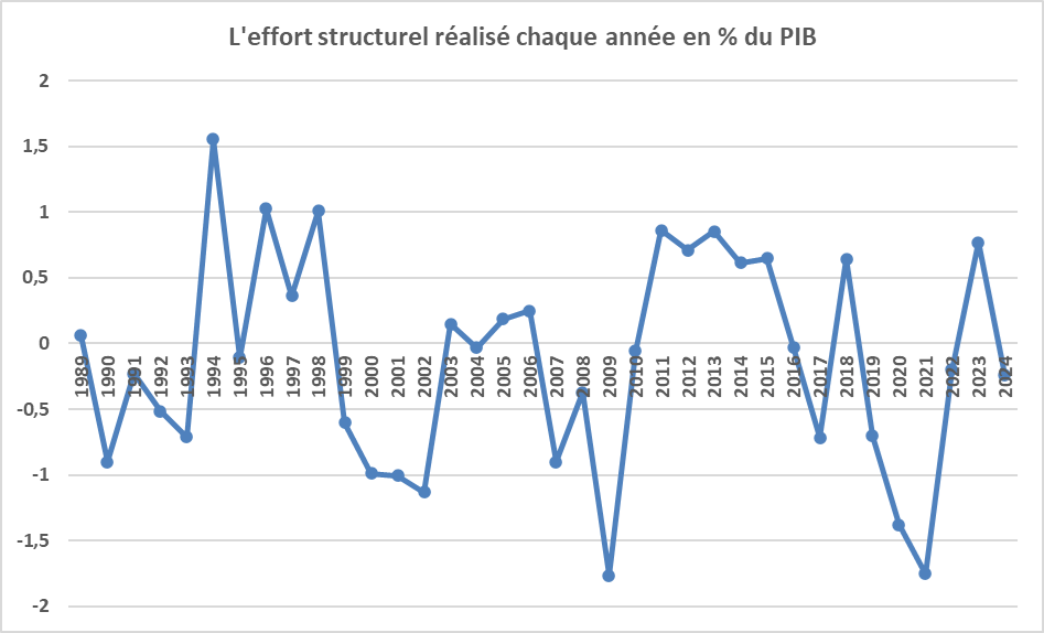 Le graphique suivant fait apparaitre les efforts structurels réalisés chaque année, sans tenir compte des mesures ponctuelles et temporaires car il serait très difficile de les identifier pour les années les plus anciennes.