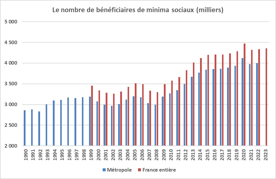 Le nombre de bénéficiaires des minima sociaux à la fin de 2023